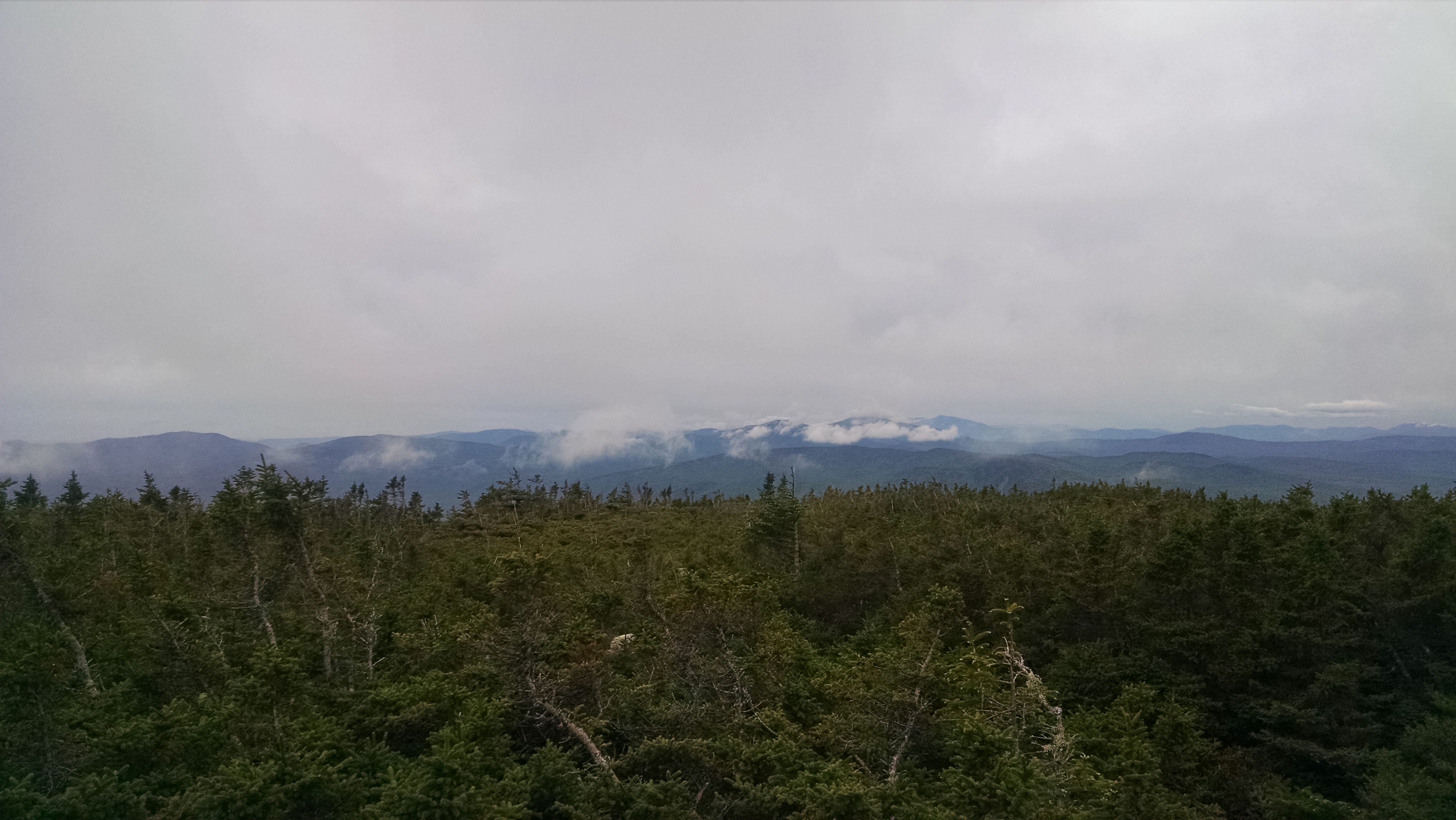 The hike is only 2.8 miles to the summit of Old Blue from the parking area, but the initial ascent out of Black Brook Notch is very steep. There are rungs on the rocks in one area, but after this initial climb of 900 feet in just over a half a mile, the trail level become more gradual for another mile and a half. The final half mile is again steep to reach the summit of Old Blue where there are good views in all directions among the stunted spruces.