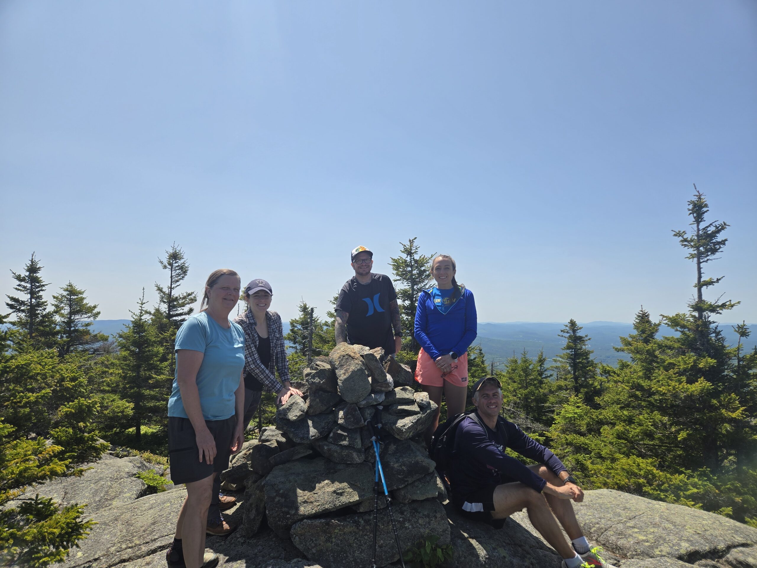 Co-leaders, Louise and Katie, bookended the hiking group and recorded 6.3 miles round trip and an elevation gain of 2,352 feet, which was a steady but manageable climb. Deciding against the Woodsum Spur add-on, the hike took approximately 5 hours with a relaxing stop at the summit for lunch (one hiker brought steak)! Overall, the group was lucky with gorgeous weather, clear views, and great company, even the black flies couldn’t bring us down.